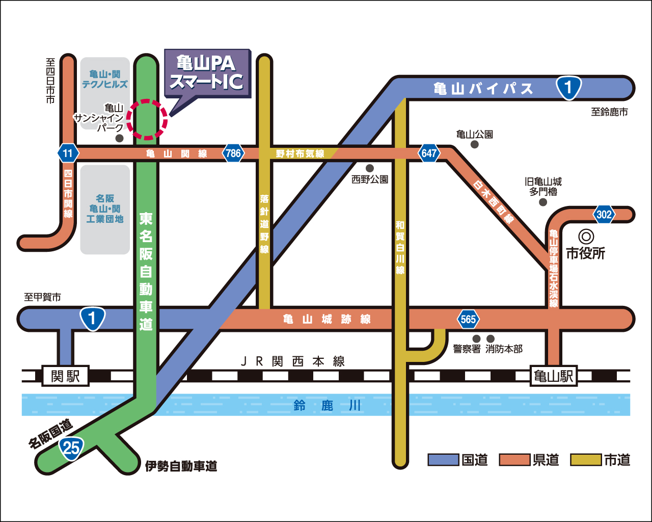 亀山パーキングエリア スマートインターチェンジ周辺図