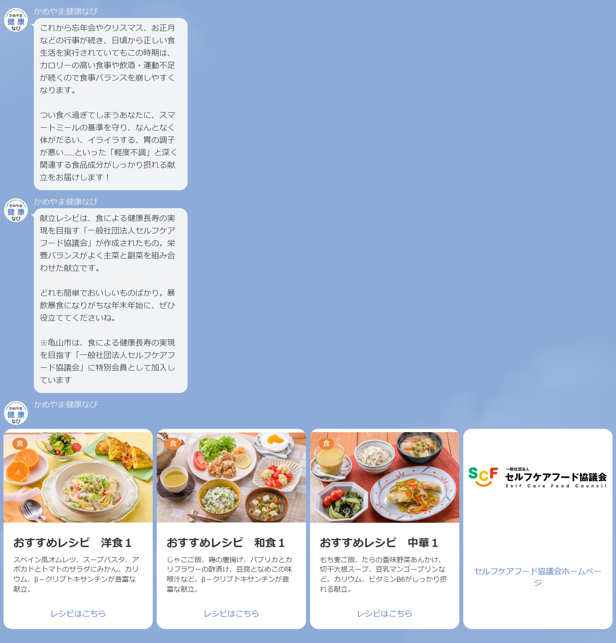 活動の詳しい内容は、一般社団法人 セルフケアフード協議会 - Self Care Food Council (scfc.or.jp) (外部リンク)をご覧ください。